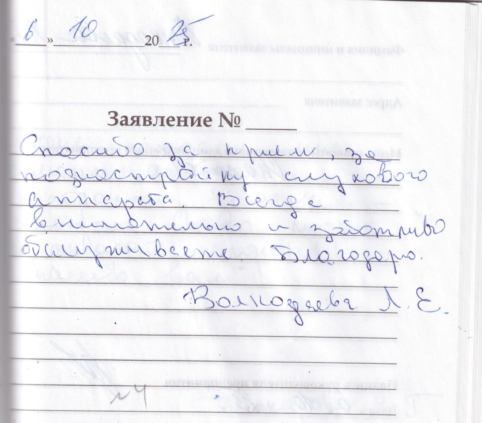 Хочу поблагодарить за помощь в замене трубочки и чистке слухового аппарата. Снова хорошо слышу!