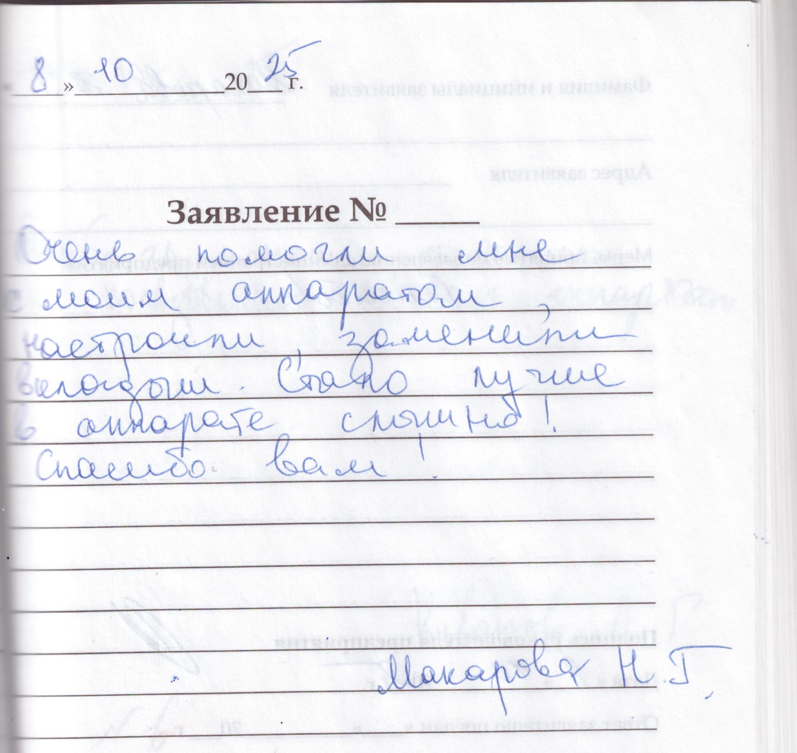 Очень помогли мне с моим аппаратом,настроили,заменили вкладыш.Стало лучше в аппарате слышно.Спасибо Вам!Макарова НГ