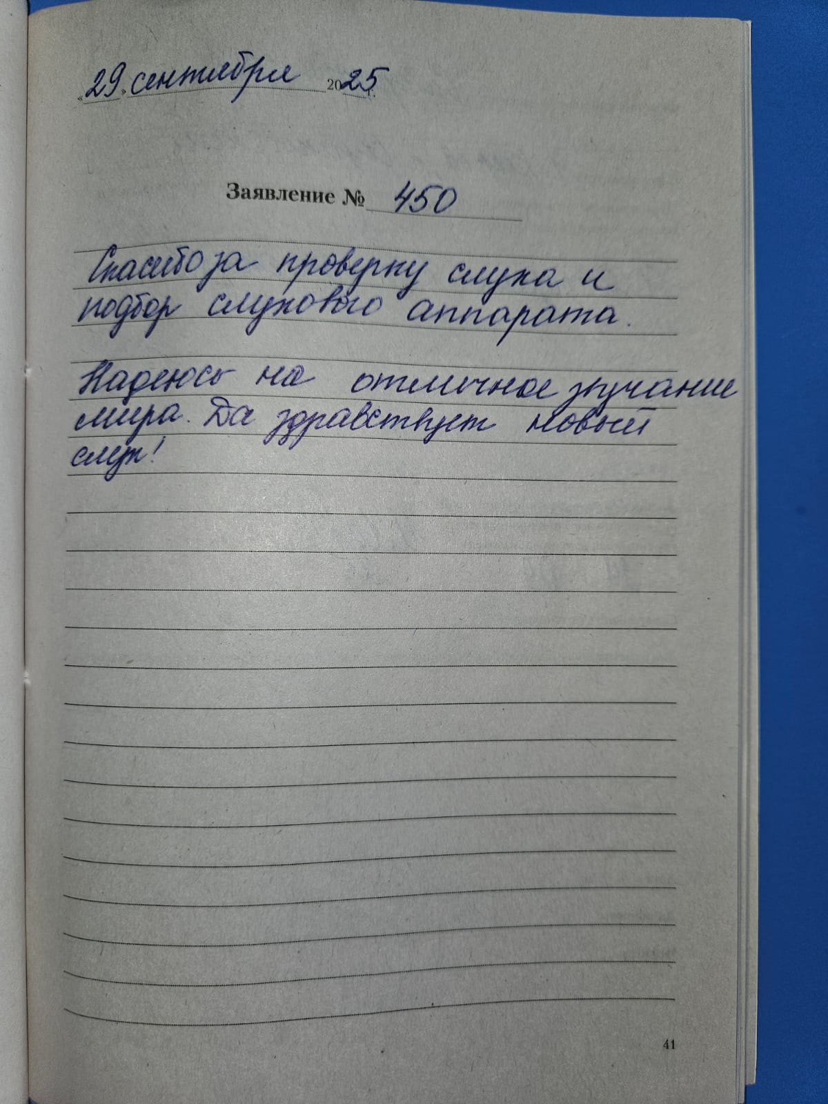 Спасибо за проверку слуха и подбор слухового аппарата. Надеюсь на отличное звучание мира. Да здравствует новый слух!
