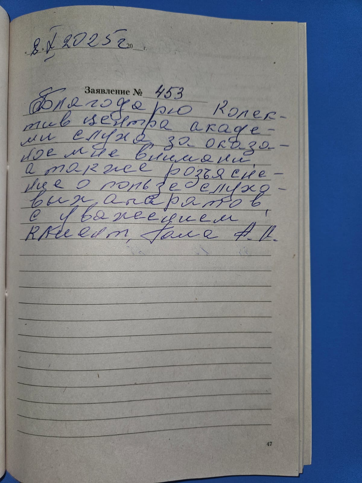 Выражаю благодарность Академии слуха за чуткость и профессионализм.