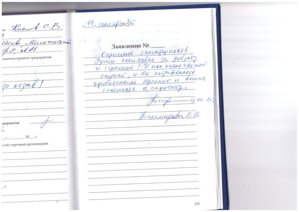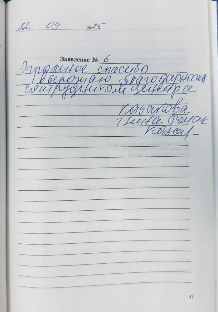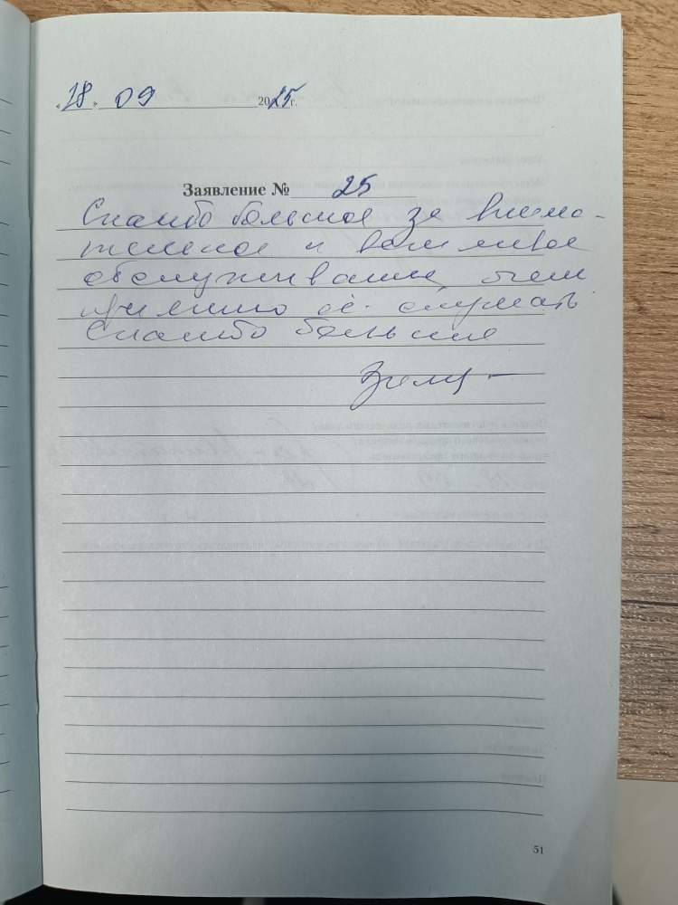 Спасибо большое за внимательное и вежливое обслуживание, очень приятно ее слушать. Спасибо большое!
