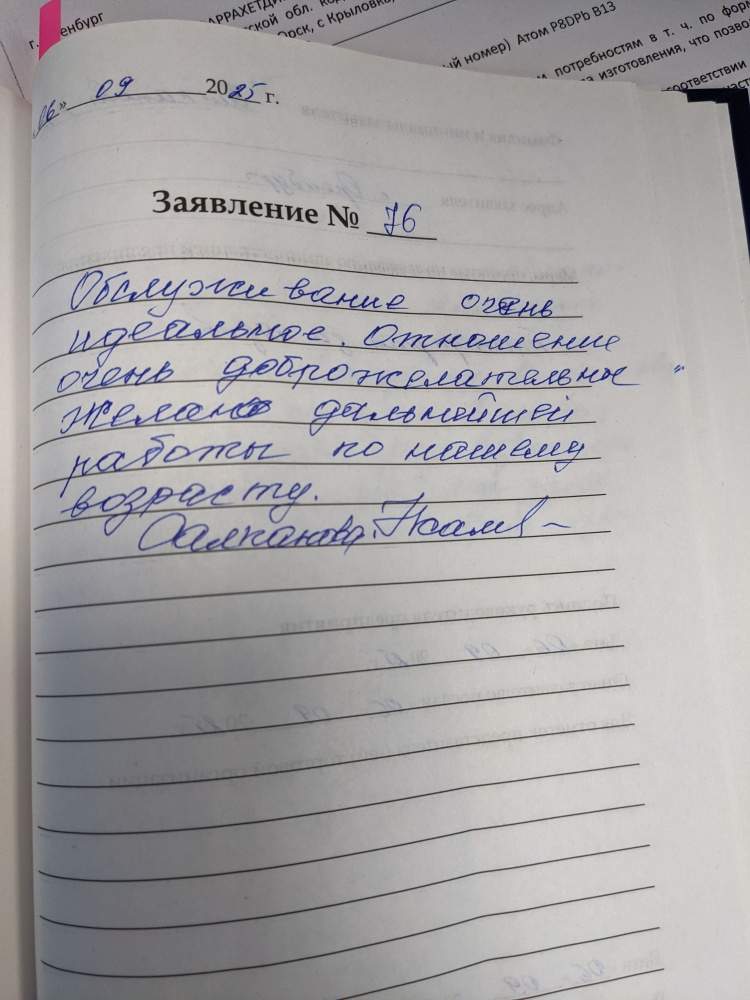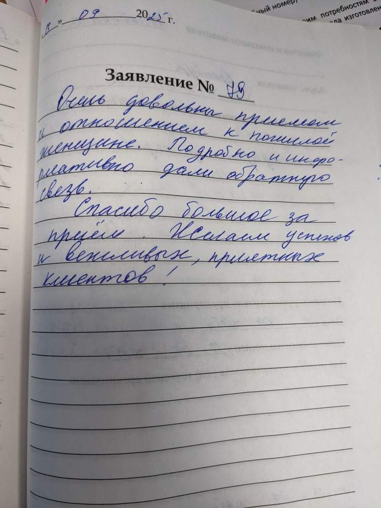 Обслуживание очень идеальное. Отношение очень доброжелательное. Желаю дальнейшей работы по нашему возрасту.