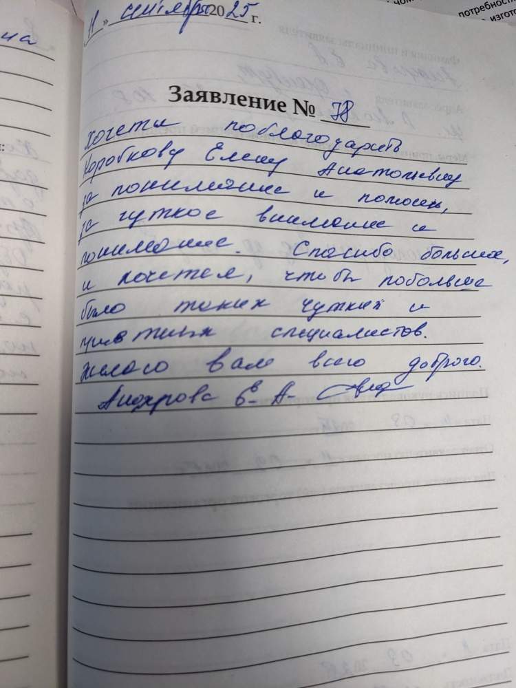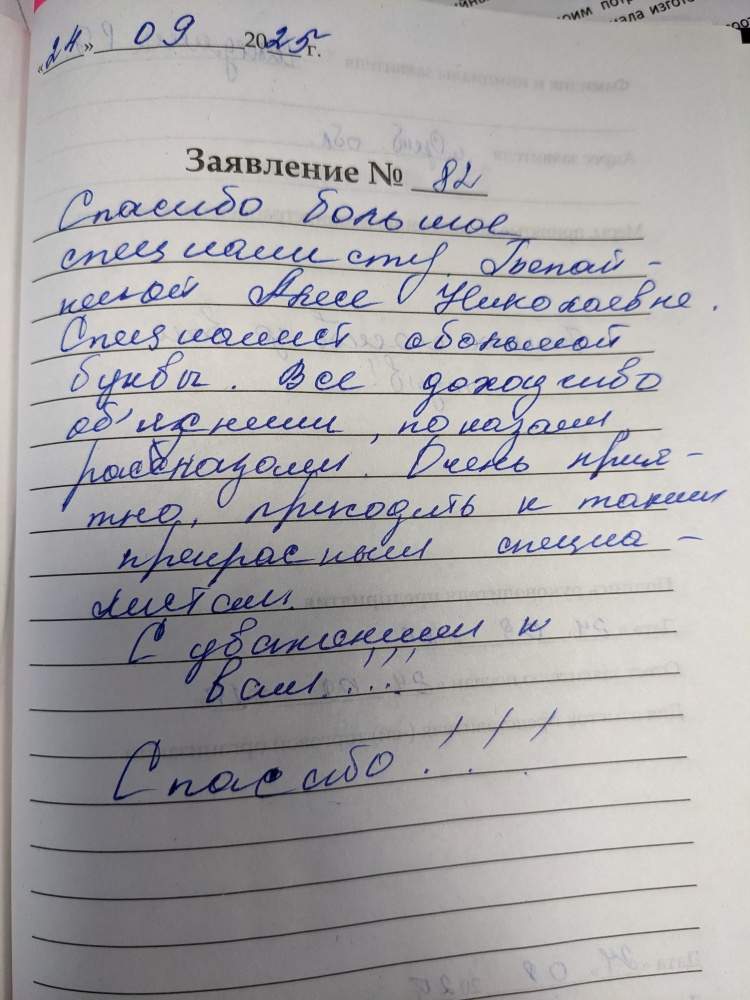 Спасибо большое за прием. Желаем успехов и вежливых, приятных клиентов!