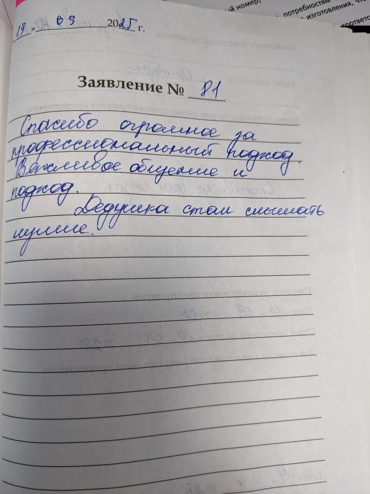 Очень довольны приемом и отношением к пожилой женщине. Подробно и информативно дали обратную связь.