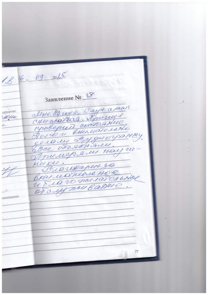 Огромная благодарность за чуткое и внимательное отношение при подборе слуховых аппаратов. Мурзин.
