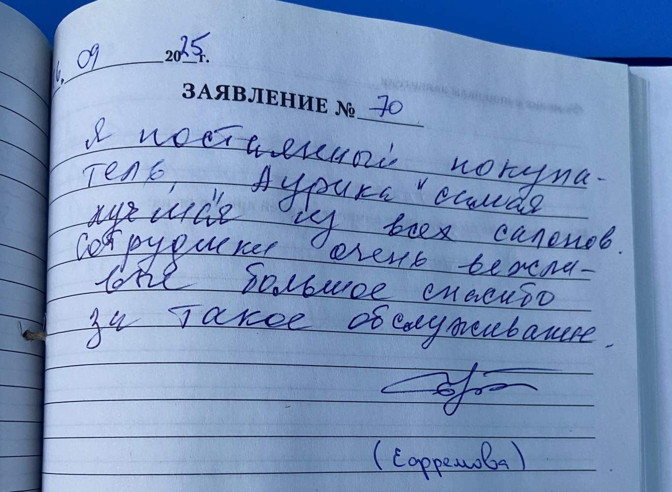 Я постоянный покупатель , "Аурика" самая лучшая из всех салонов. Сотрудники очень вежливые, большое спасибо за такое обслуживание