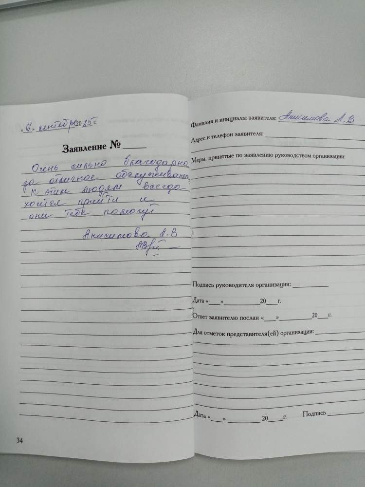 Очень сильно благодарна за отличное обслуживание к этим людям всегда хочется прийти и они тебе помогут