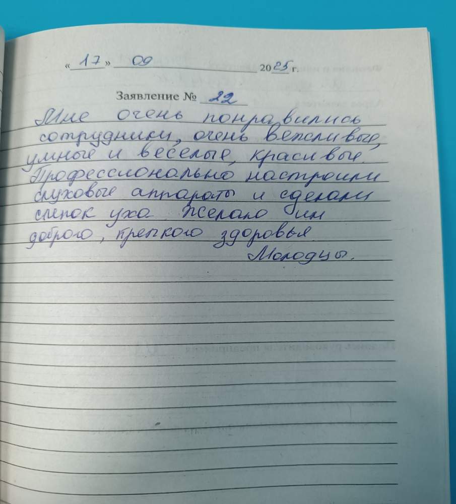 Я часто обращаюсь в Академию слуха. Коллектив очень дружный, доброжелательный, отзывчивый. Огромное им спасибо что с такими гражданами работаете ведь с нами тяжело.