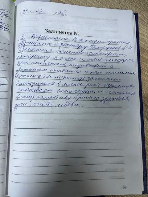 Я, Веревочкина В.Н., неоднократно обращалась к доктору Бирюкову А.И. Приятное общение с доктором, которому я очень и очень благодарна. Весь коллектив отзывчивый, с уважением относится к нам пожилым.