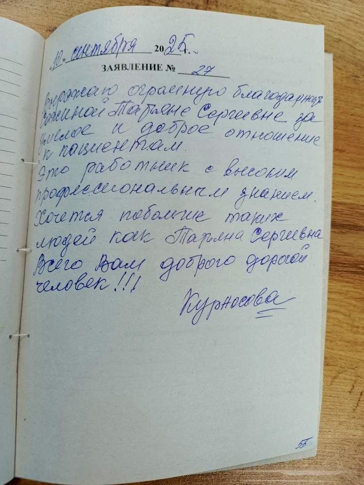 Выражаю огромную благодарность Сажиной Татьяне Сергеевне за умелое и доброе отношение к пациентам. Это работник с высоким профессиональным знанием. Хочется побольше таких людей как Татьяна Сергеевна. Всего Вам доброго дорогой человек!!!