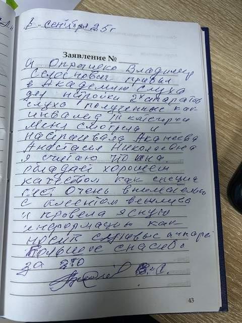 Благодарен коллективу Академии слуха за отзывчивость , отношение к людям пожилого возраста