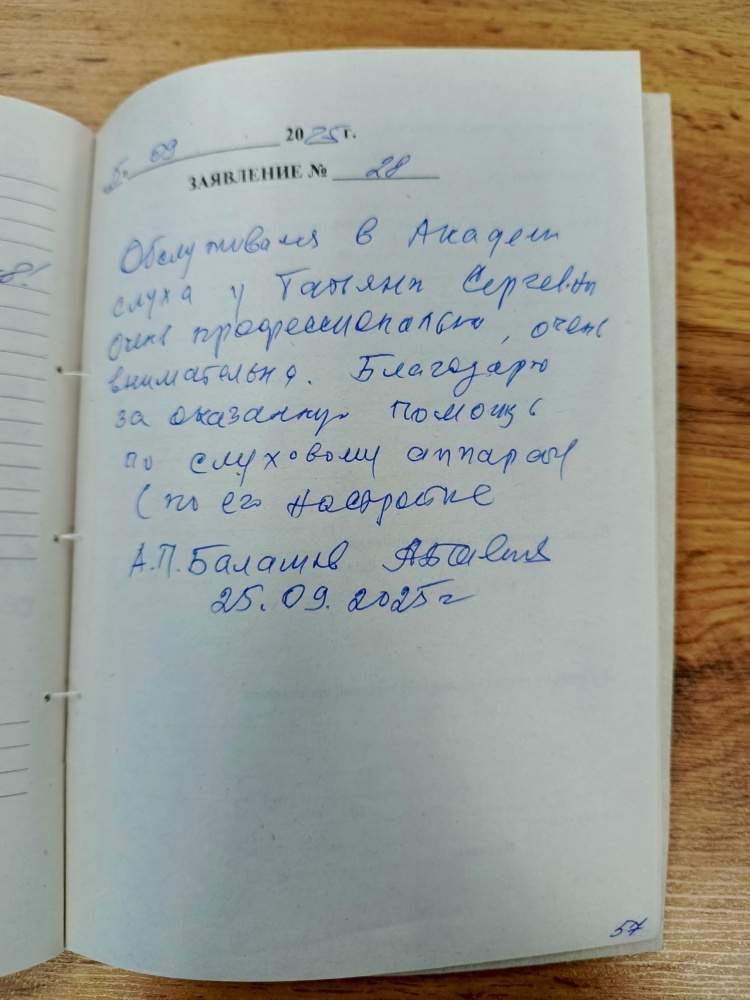 Обслуживался в Академии слуха у Татьяны Сергеевны. Очень профессиональна, очень внимательна. Благодарю за оказанную помощь по слуховым аппаратам (по его настройке). А.П. Балашов.
