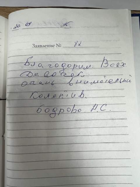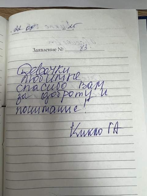 Хотелось бы пожелать занести благодарность в личное дело. Огромное спасибо от всего сердца и пожелать всему коллективу крепкого здоровья, удачи, счастья, любви.