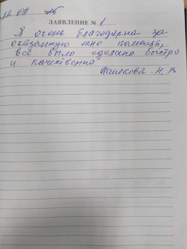 Я очень благодарна за оказанную мне помощь, все было сделано быстро и качественно.