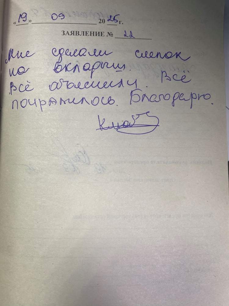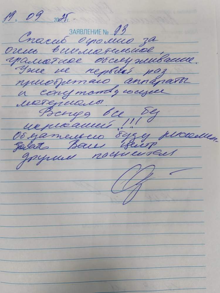 Пришла без записи. Специалисты приняли, настроили аппарат. Большое спасибо за отзывчивость.
