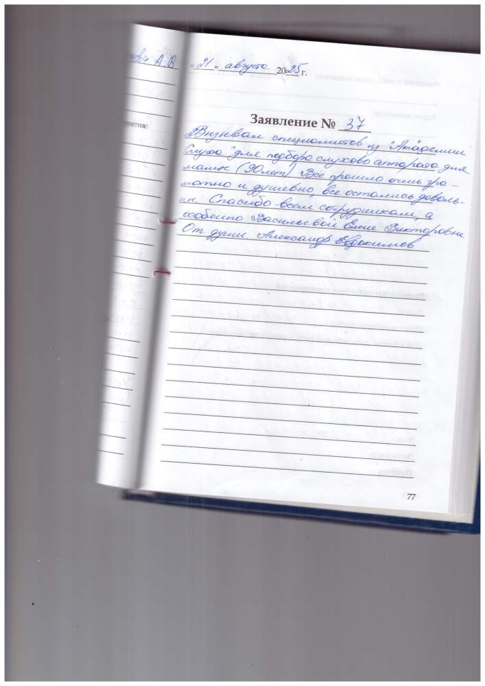 Я Андреев Владимир Фёдорович очень благодарен за то что мне с выездом на дом очень хорошо обслужили меня Анна Игоревна с Академии слуха.