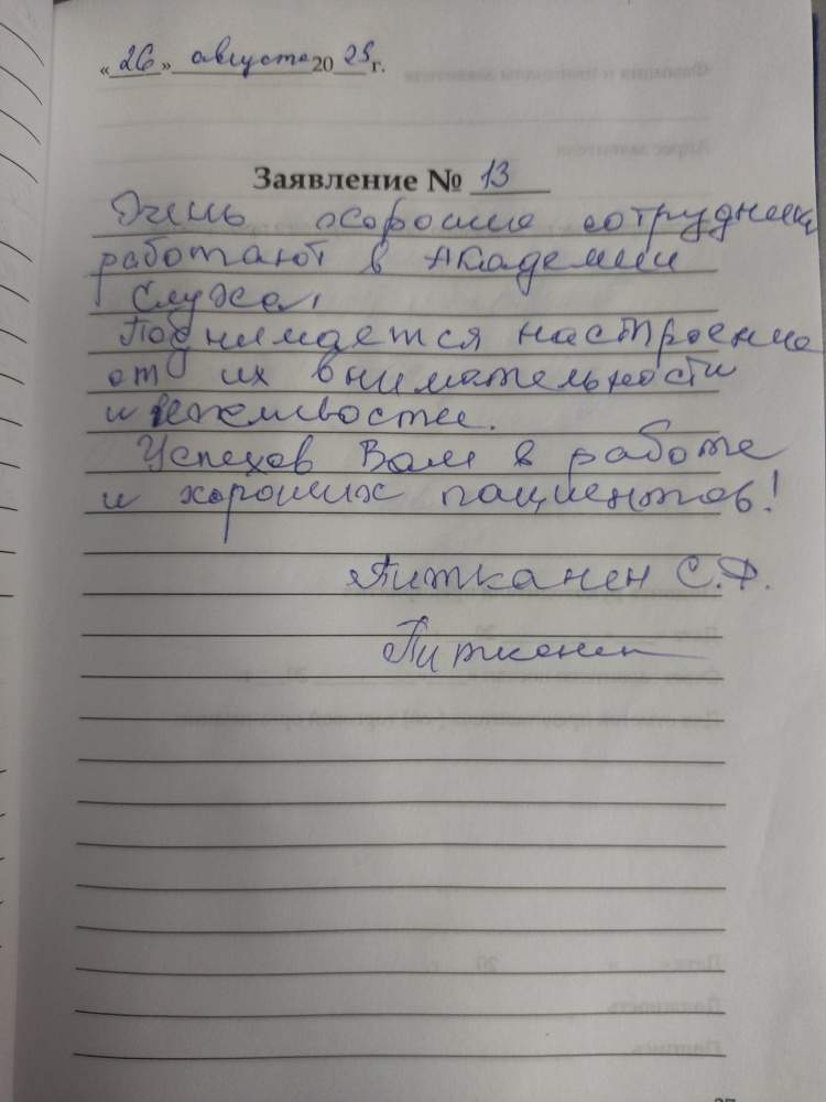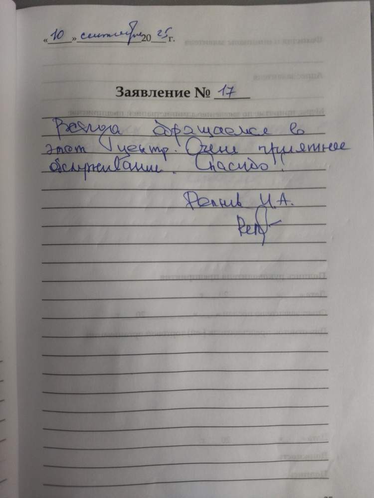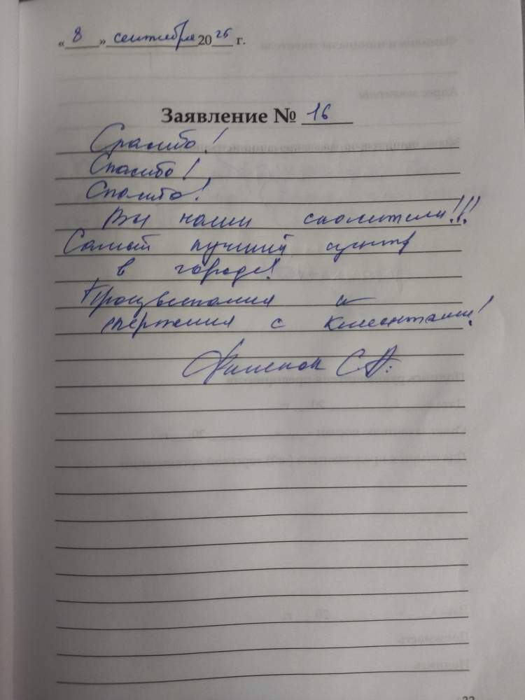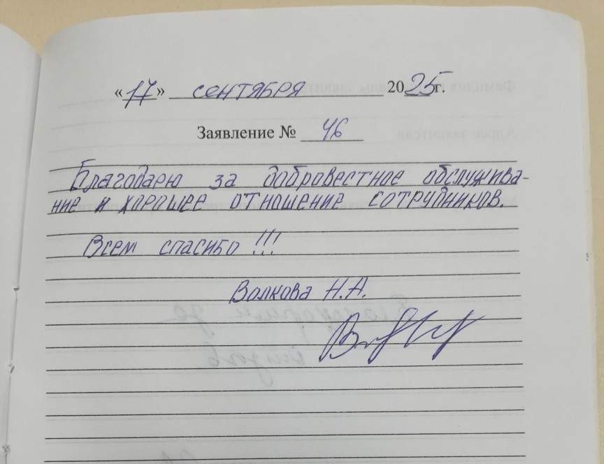 Благодарю за добросовестное обслуживание и хорошее отношение сотрудников. Всем спасибо!!! Волкова Н.А.