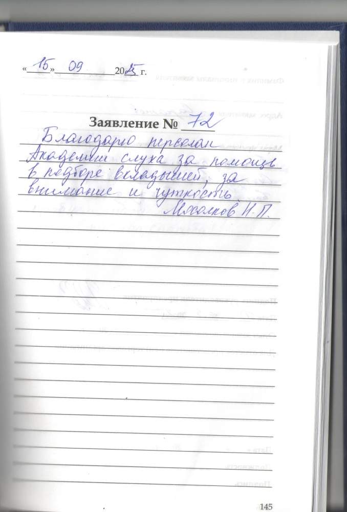 Благодарю персонал 2Академии Слуха" за помощь в подборе вкладышей, за внимание и чуткость.