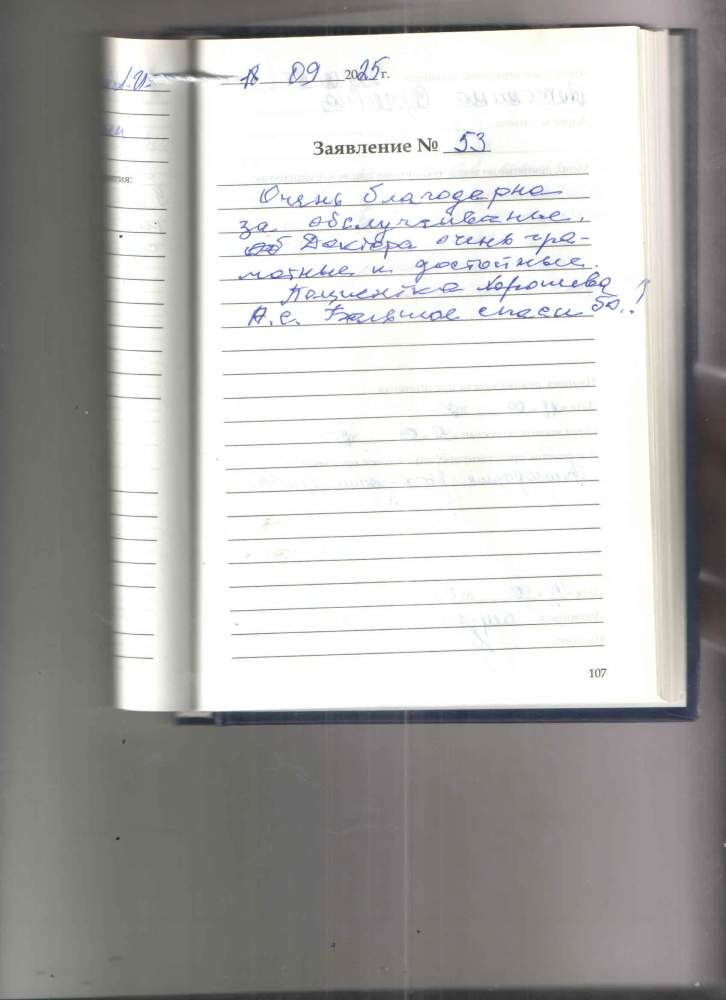 Очень благодарна за обслуживание.Доктора очень грамотные и достойные.Пациентка Хорошева А.С..Большое спасибо!