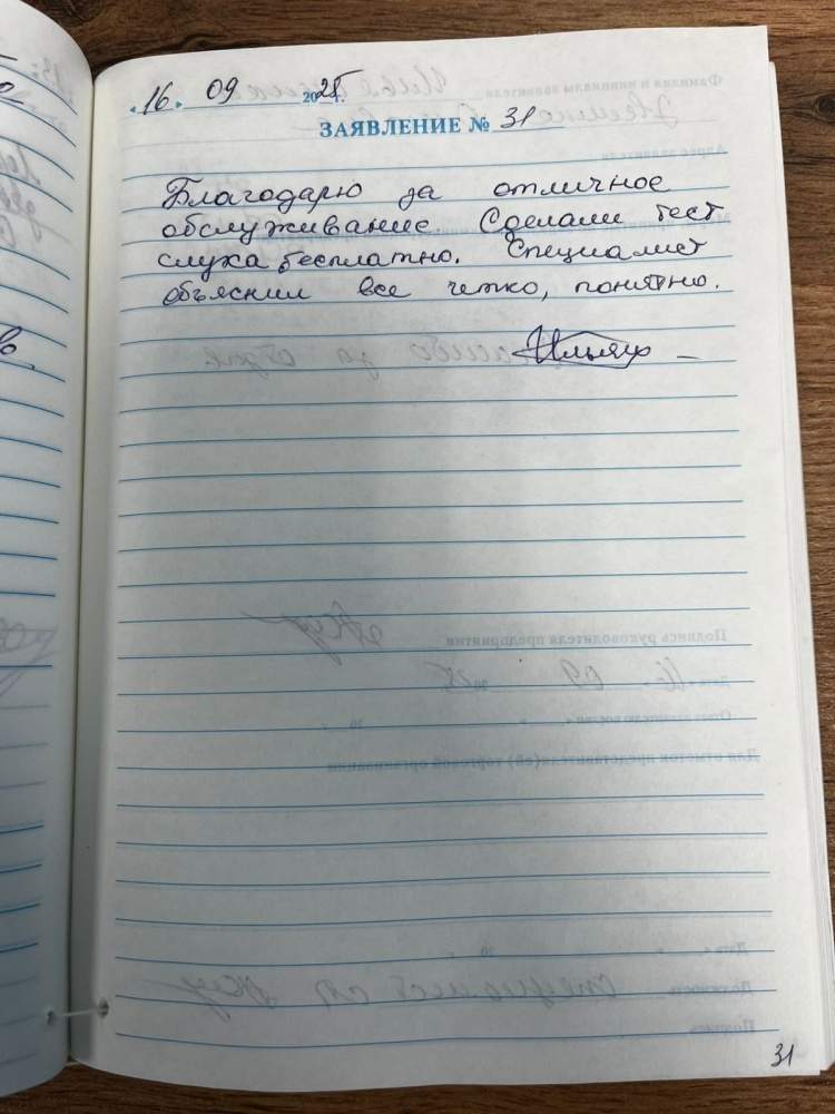 Благодарю за отличное обслуживание. Сделали тест слуха бесплатно. Специалист объяснил все четко, понятно.