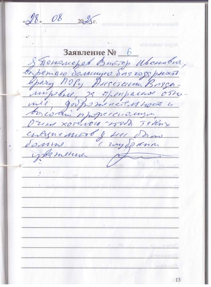 Я Пономарев Виктор Иванович,выражаю большую благодарность врачу лору Анастасии Владимировне за прекрасное отношение, доброжелательность и высокий профессионализм. Очень хотелось чтобы таких специалистов у нас было больше . С глубоким уважением.