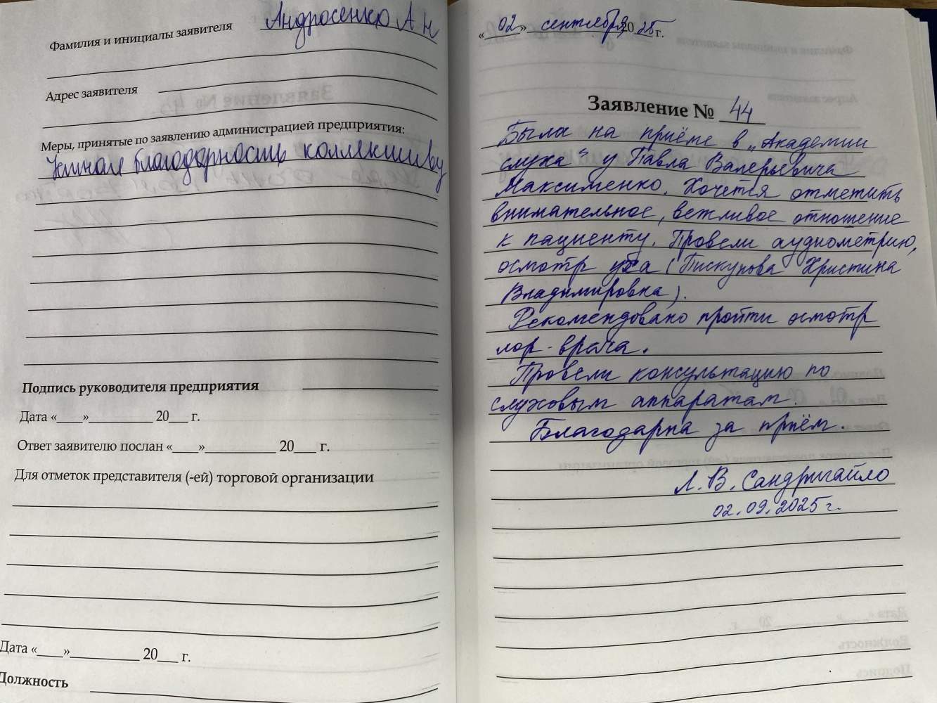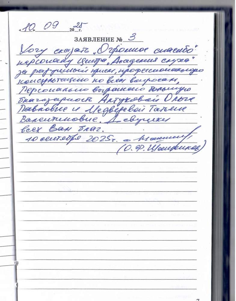 Большое спасибо Академии слуха. Прекрасный приём. Всё очень профессионально!