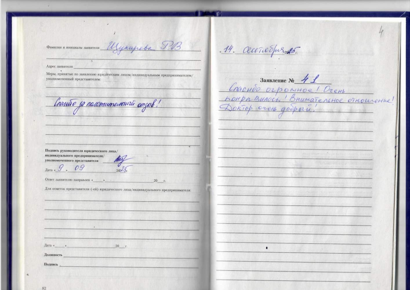 Отзыв 82. Большое, огромное человеческое спасибо! Благодарим от всего сердца за чуткое отношение к пациентам!!! Побольше таких докторов!!! Благодарим.