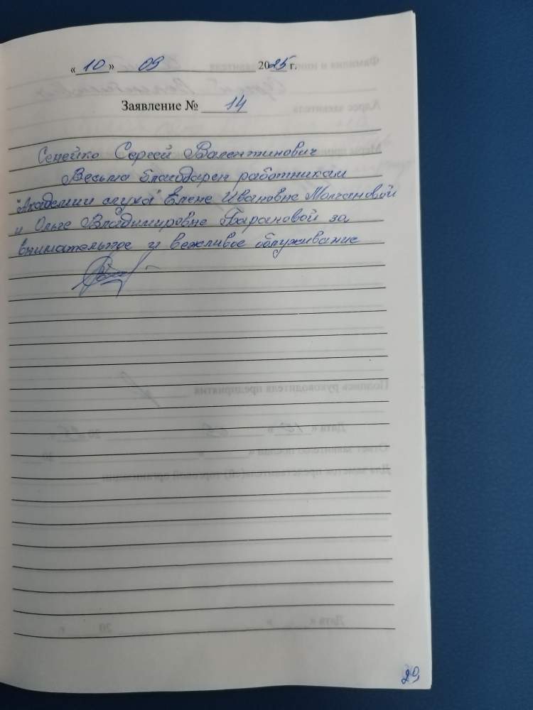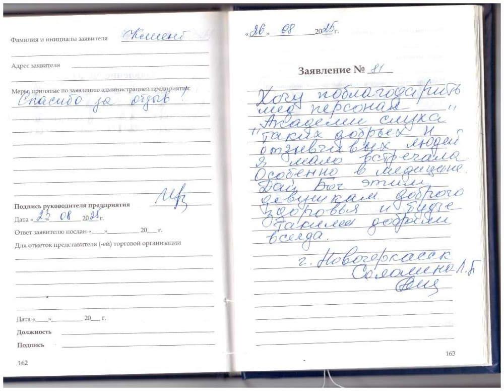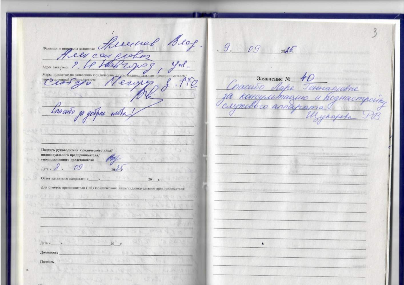 Отзыв 83. Хочу поблагодарить коллектив Академии Слуха за качественный подбор слухового аппарата, за человечность и отзывчивость, за доброту и профессионализм. Спасибо большое!
