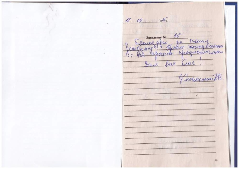 Благодарю за Вашу работу! Приём, консультация- всё прошло профессионально