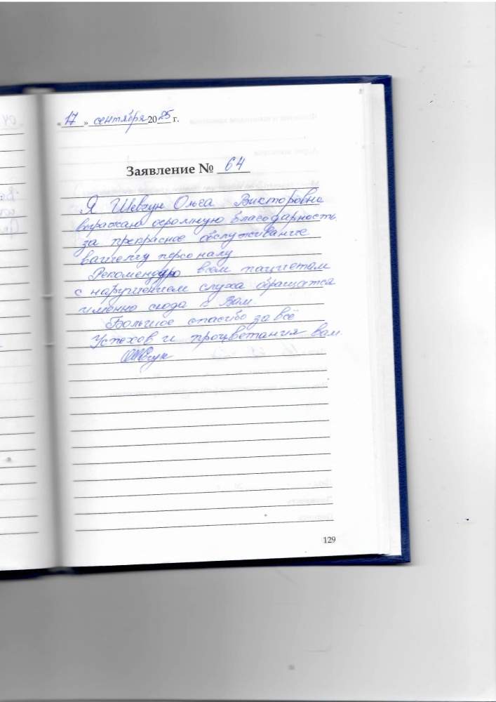 Я Шевчун Ольга Викторовна выражаю огромную благодарность за прекрасное обслуживание вашему персоналу.