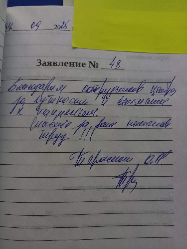 Всегда с уважением и доброжелательно, уважительный персонал клиники и индивидуальный подход. Спасибо огромное вам за вашу профессию и уважение к людям, и еще раз благодарим вас за вашу искренность и уважение. "Спасибо"