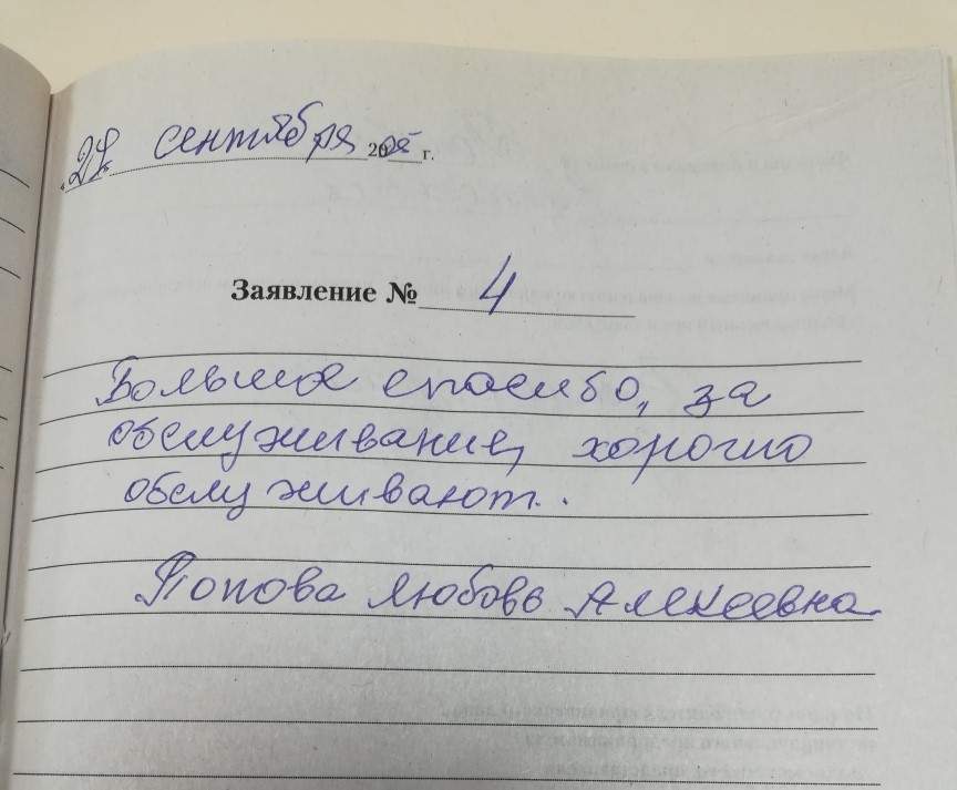 Большое спасибо за обслуживание , хорошо обслуживают. Попова Любовь Алексеевна.