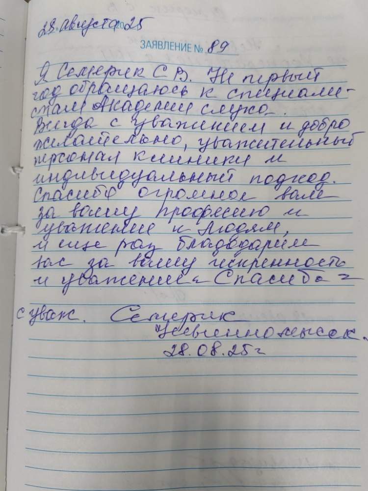 09.09.2025 года я посетил Академию слуха доволен что посетил работой персонала