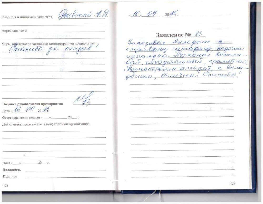 Отзыв 88. Спасибо большое персоналу за терпение и внимательность! Трепетное отношение к каждому пожеланию!