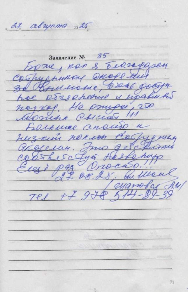 Благодарю за отличную квалификацию своей работы и доброе отношение к инвалиду и просто человеку. Спасибо. Маслова Зоя Васильевна