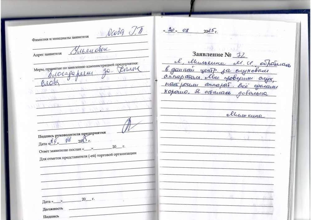 Я, Милькина М.И. обратилась в данный центр за слуховыми аппаратами. Мне проверили слух, настроили слуховой аппарат. Всё сделали хорошо. Я осталась довольна. Милькина