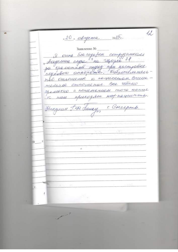 Уважаемые работники Академии слуха выражаю вам благодарность за вежливое и профессиональное обслуживание.