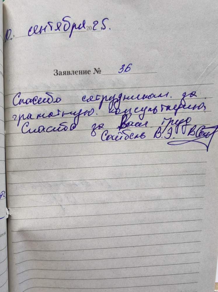 Спасибо сотрудникам за грамотную консультацию. Спасибо за ваш труд. Сотбель В.Э.