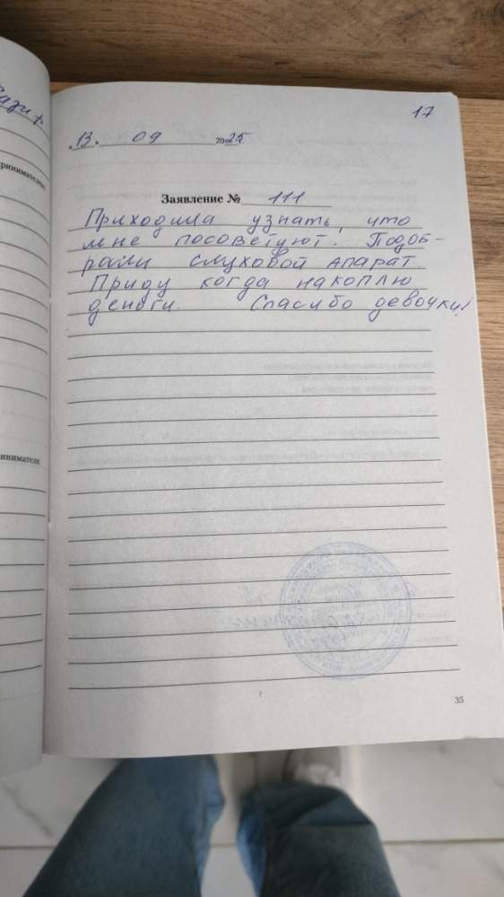 Приходила узнать, что мне посоветуют. Подобрали слуховой аппарат. Приду когда накоплю деньги. Спасибо девочки!
