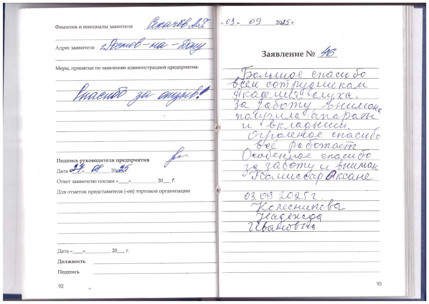 Большое спасибо всем сотрудникам Академия слуха за заботу, внимание. Получила аппараты и вкладыши. Огромное спасибо, всё работает. Особенное спасибо за заботу и внимание Комиссар Оксане.