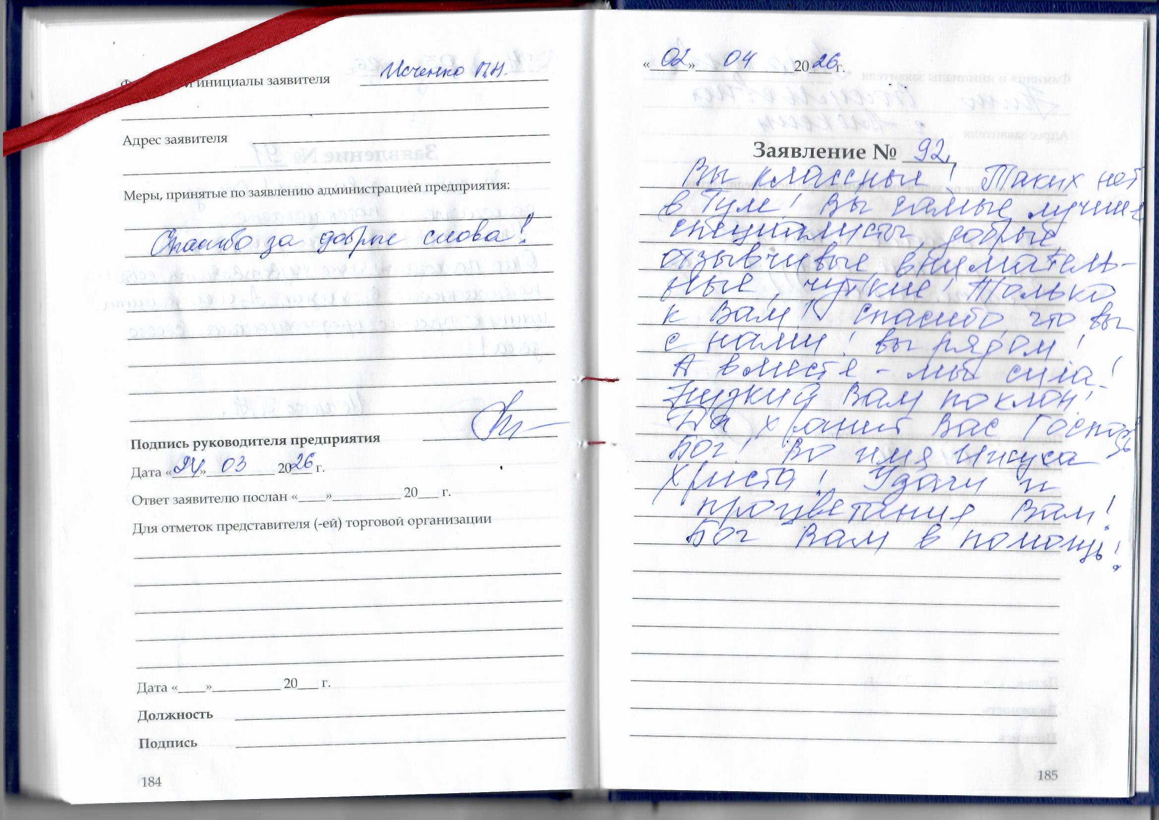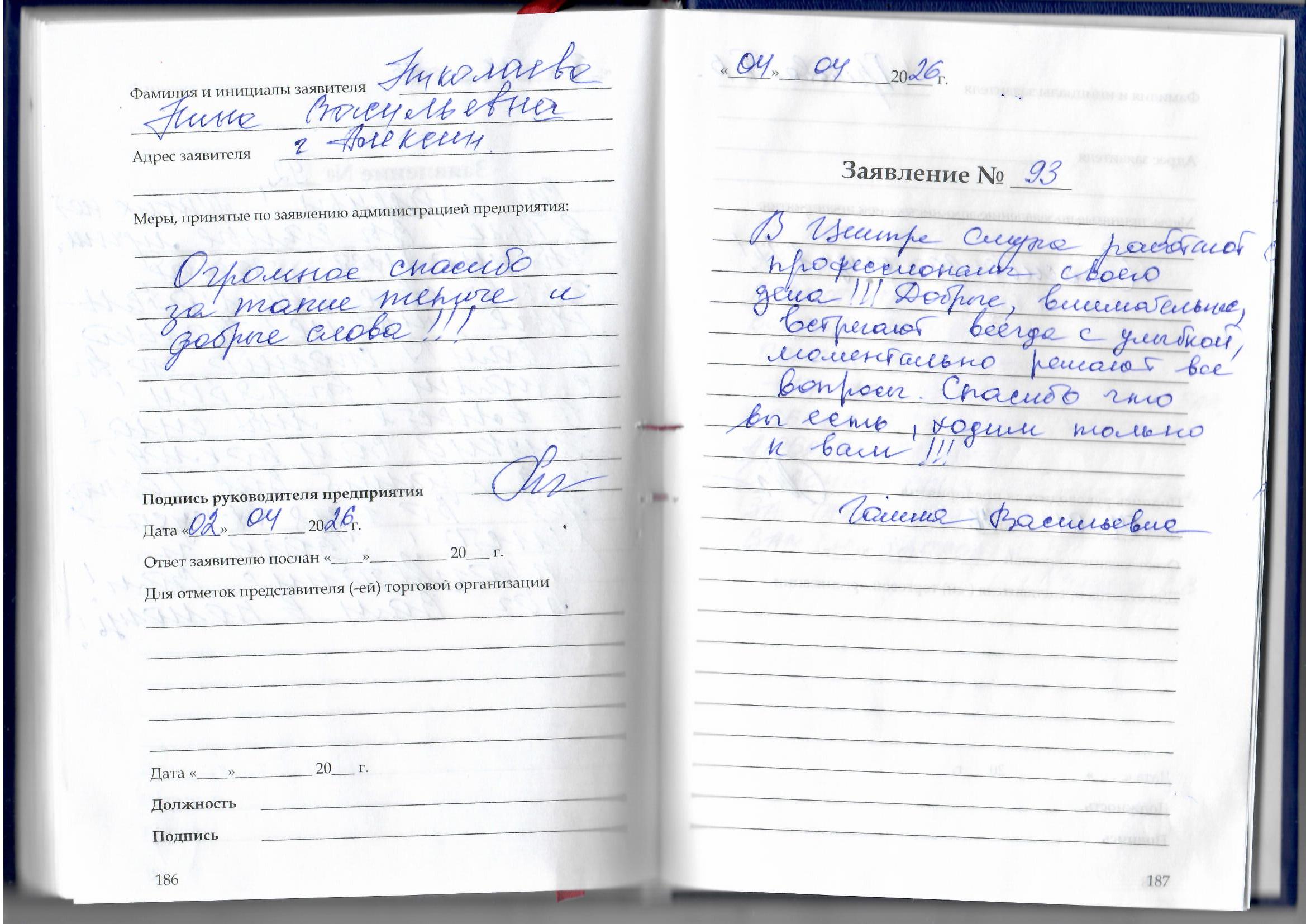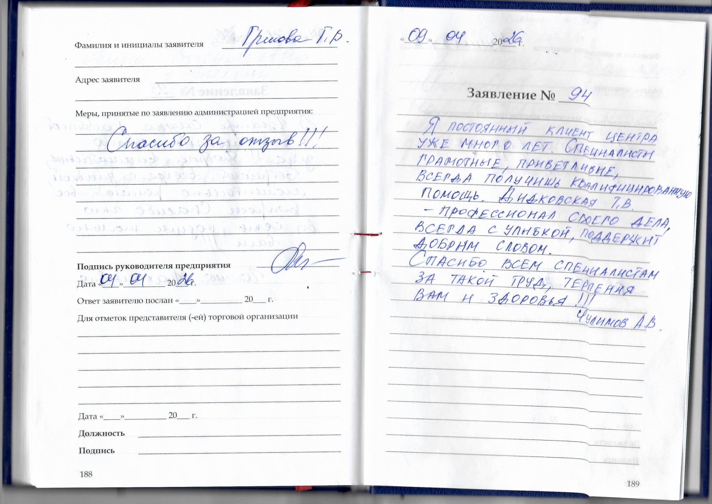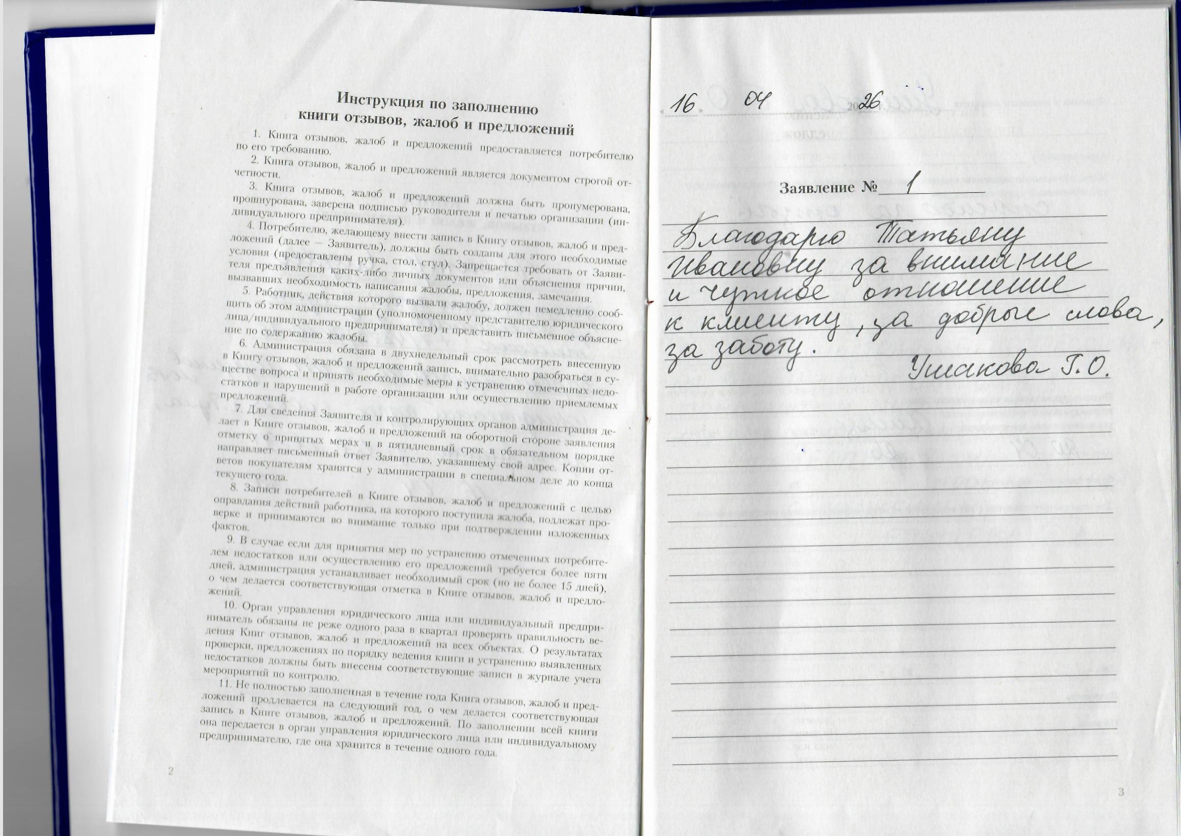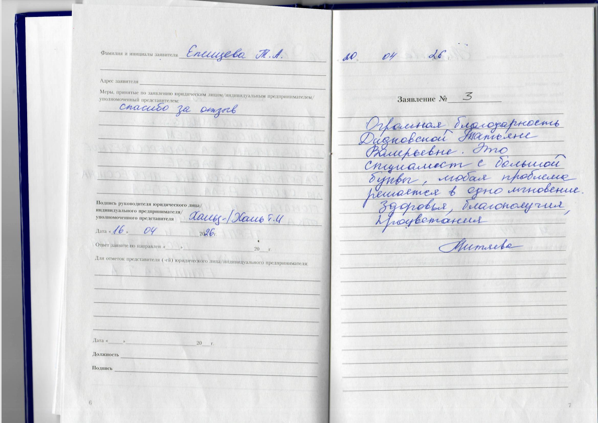 Благодарю Татьяну Ивановну за внимание и чуткое отношение к клиенту, за добрые слова, за заботу.