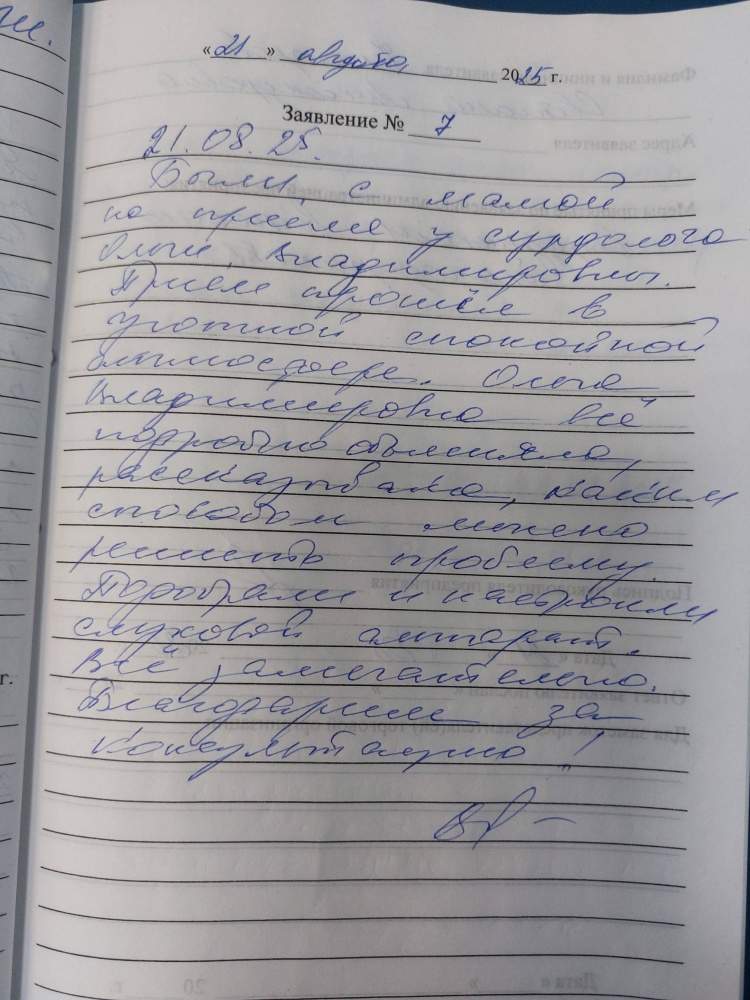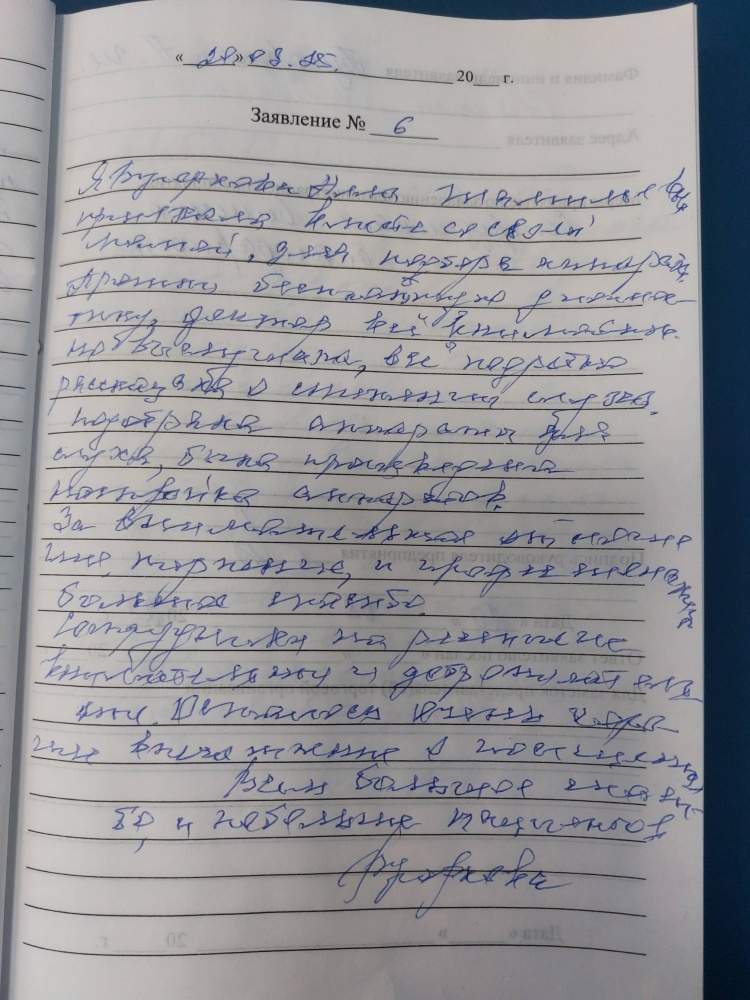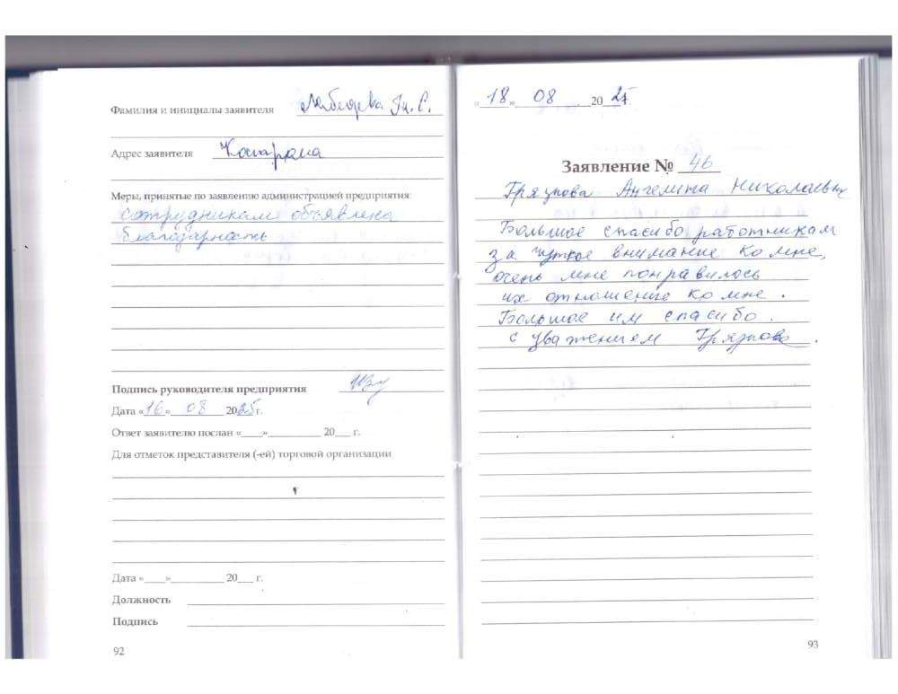 Грязнова Ангелина Николаевна. Большое спасибо работникам за чуткое внимание ко мне, очень мне понравилось их отношение ко мне. Большое им спасибо. с уважением Грязнова.