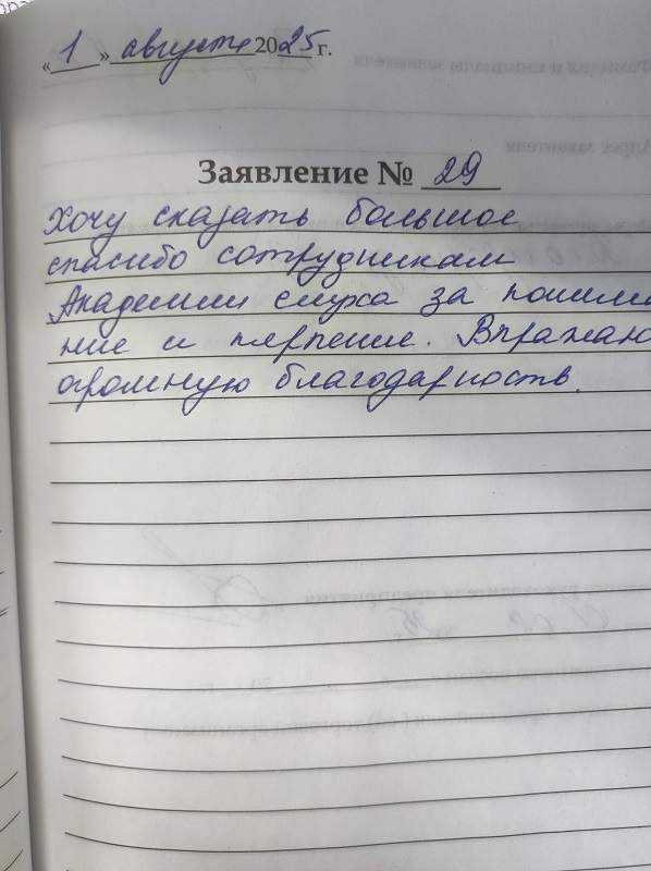 Хочу сказать большое спасибо сотрудникам Академии слуха за понимание и терпение. Выражаю огромную благодарность.