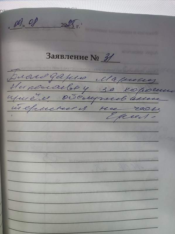 Спасибо за прекрасное отношение к проблеме моего мужа.Сервис на высшем уровне.