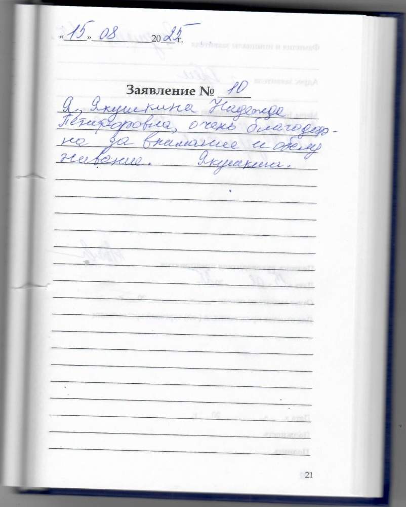 Я, Якушкина Надежда Петифоровна , очень благодарна за внимание и обслуживание.