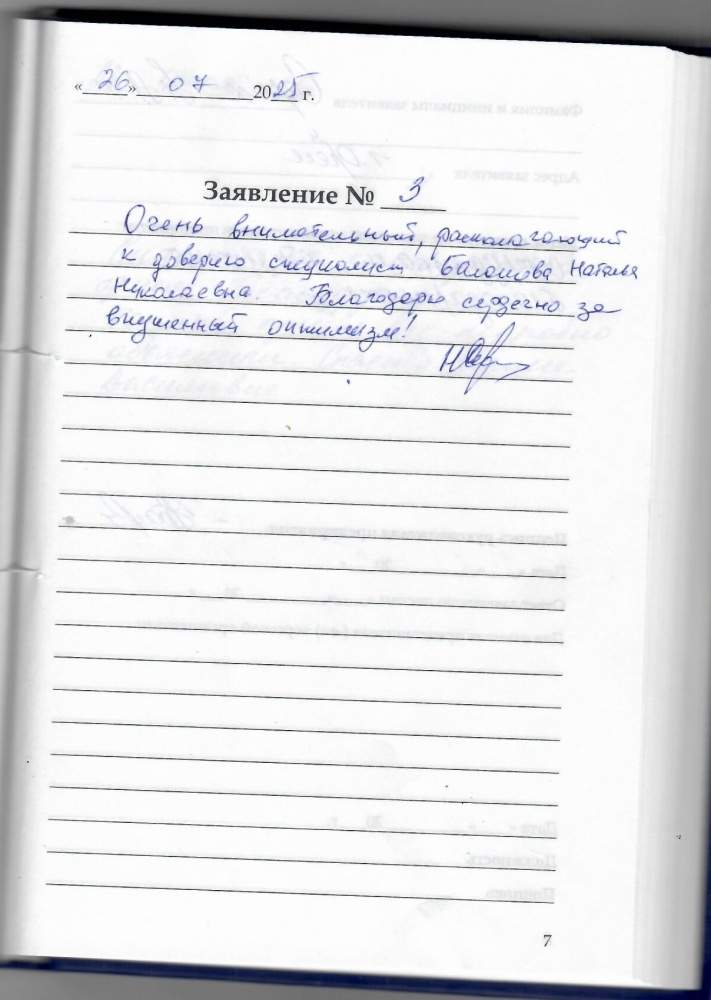 Очень внимательный ,располагающий к доверию специалист Балашова Наталия Николаевна . Благодарю сердечно за внушенный оптимизм!