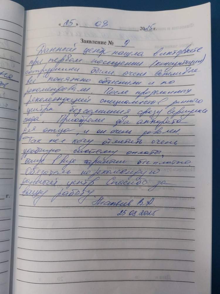 Данный центр нашла в интернете, при первом посещении (консультации) сотрудники были очень вежливые, все понятно объяснили и порекомендовали. После проделанных рекомендаций специалистов данного центра без сомнения сразу вернулась сюда. Приобрели два аппарата для отца, и он очень доволен.Также хочу отметить очень удобную систему оплаты, бонус в виде гарантии бесплатно. Обязательно порекомендую данный центр. Спасибо за вашу работу.
