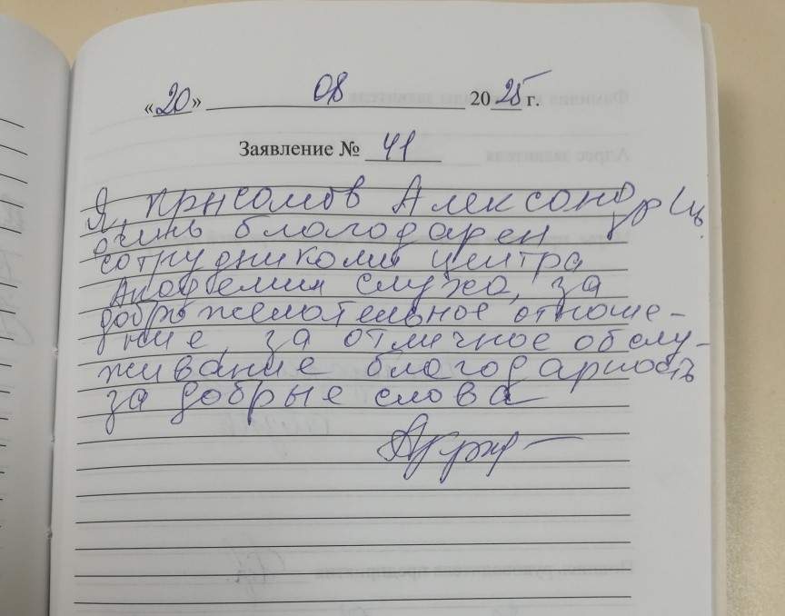 Спасибо работникам центра за их уважение и профессиональное обслуживание. Современный центр, приятная атмосфера . Обязательно порекомендую обратиться к вам своим друзьям и близким. Спасибо!