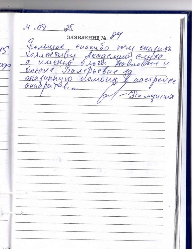 Большое спасибо хочу сказать коллективу «Академии слуха» , а именно Ольге Павловне и Оксане Валерьевне за оказанную помощь в настройке аппаратов.