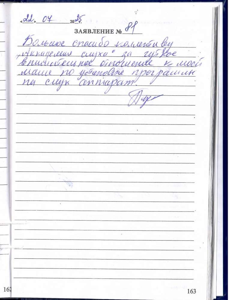 Большое спасибо коллективу «Академии слуха» за чуткое, внимательное отношение к моей маме по установке программы на слуховой аппарат.